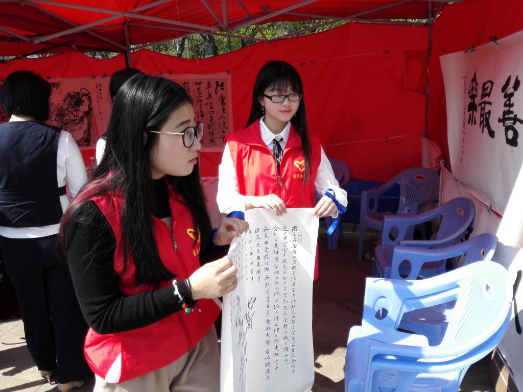 揭阳职业技术学院蓝星志愿者承担了本次公益慈善活动的志愿服务工作,志愿者由32名师生组成,并以优质的志愿服务,展现了蓝星志愿者的良好风貌,为公益慈善活动的圆满成功提供了保障。蓝星志愿者在活动现场的服务项目主要有嘉宾接待、场务服务、咨询引导、招待自闭症儿童及家长等。在服务期间,志愿者举止得体、服务周到,受到了各界人士的一致好评,主办单位揭阳市自闭症康复教育协会授予蓝星志愿者服务队“热心公益大爱无疆”荣誉称号。本次活动中,蓝星志愿者通过身体力行的服务表达对自闭症患者的关爱,传递爱心,让更多的社会爱心人士加入到关爱、理解、接纳自闭症患者的志愿服务队伍。志愿者小梁同学说:这次活动让我感受到社会充满爱心,很高兴能参加关爱自闭症患者的志愿服务工作,正如活动中一位书法家所写“为善最乐”。