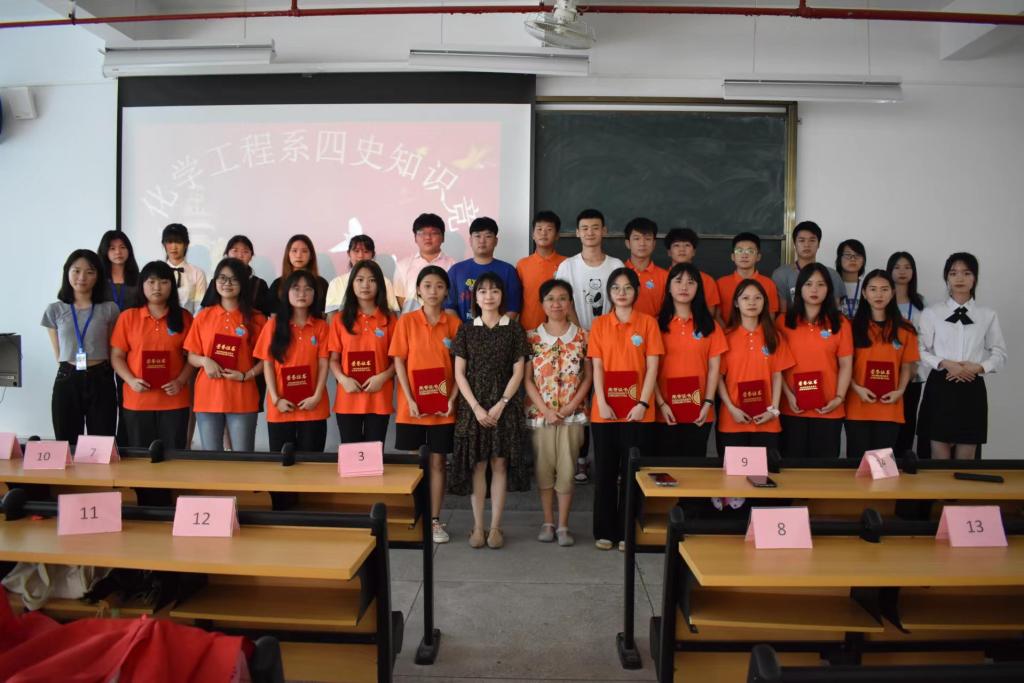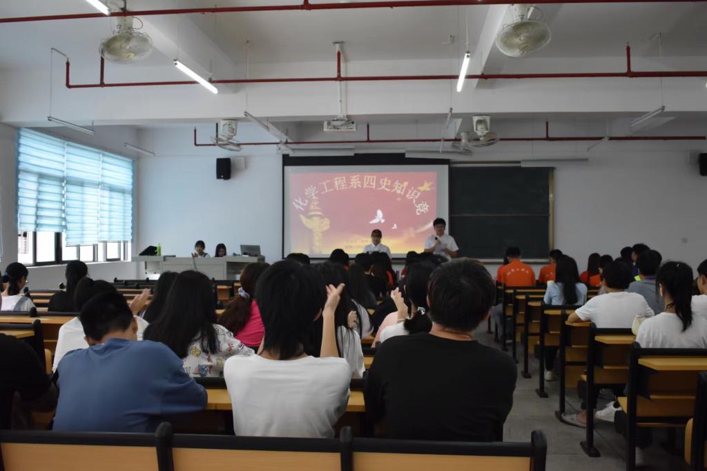 比赛分为初赛和决赛两个阶段。5月26日举办的初赛为网络答题形式,共有120名同学参加,经过初赛选拔后,前十六名同学进入决赛。决赛于6月10日中午在教研楼204举行,由龚佳文和胡绵涛主持此次决赛。化工系学生党支部书记刘淑媛老师、化工系团总支书记陈泽纯老师及部分学生代表参加了此次活动。
