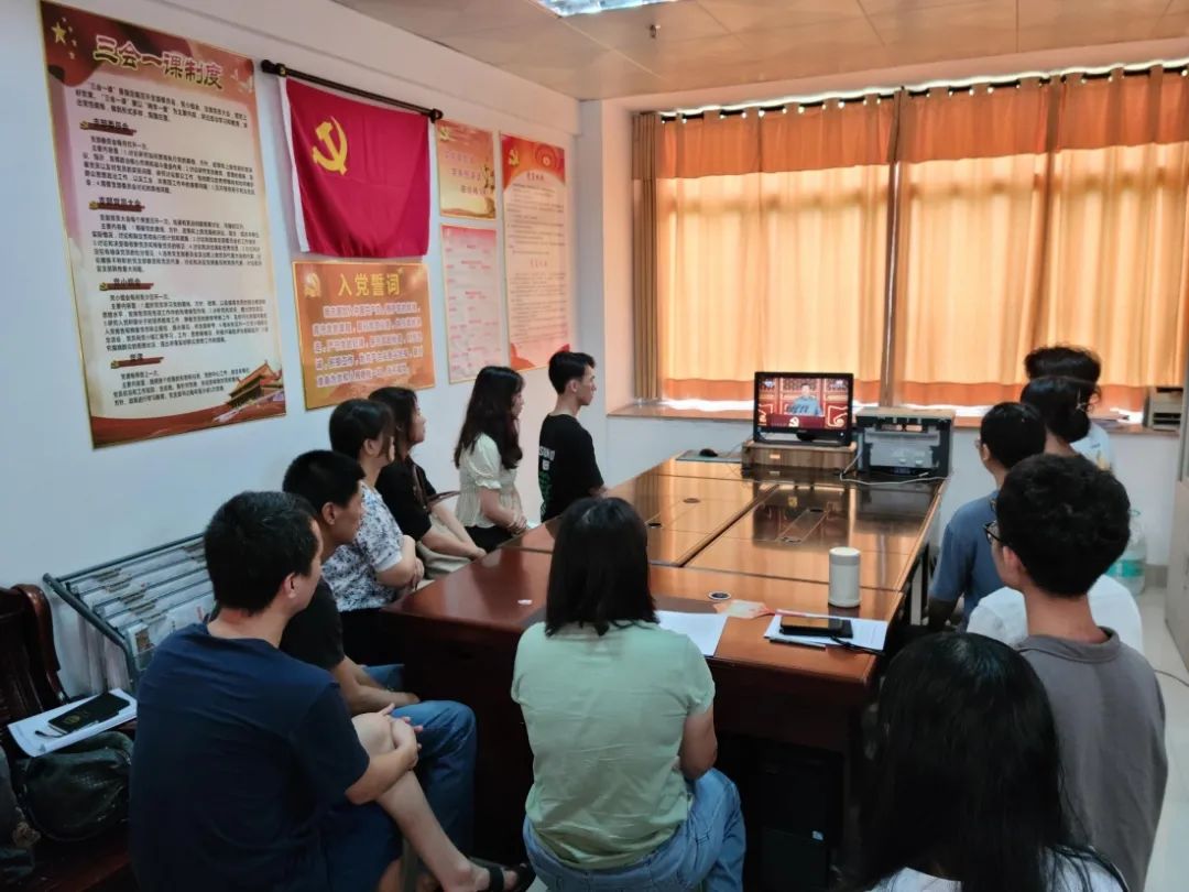 化工系于2021年7月1日组织教师党员和学生代表收看庆祝中国共产党成立100周年大会的直播。其中,陈敏杰副书记、江英志主任、刘月颖老师以及蔡曼静同学四位同志在AT21参加学院组织的集中收看活动,我系另外9名党员教师和6名入党积极分子在行政楼307集中收看大会直播。通过本次大会,尤其聆听了是习近平总书记发表的重要讲话后,师生都为我党在过去100年的奋斗历程中取得的光辉成就感到无比骄傲,坚信在中国共产党的领导下,必将实现中华民族的伟大复兴。