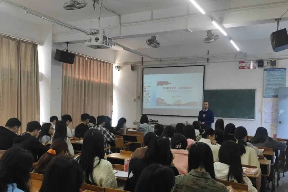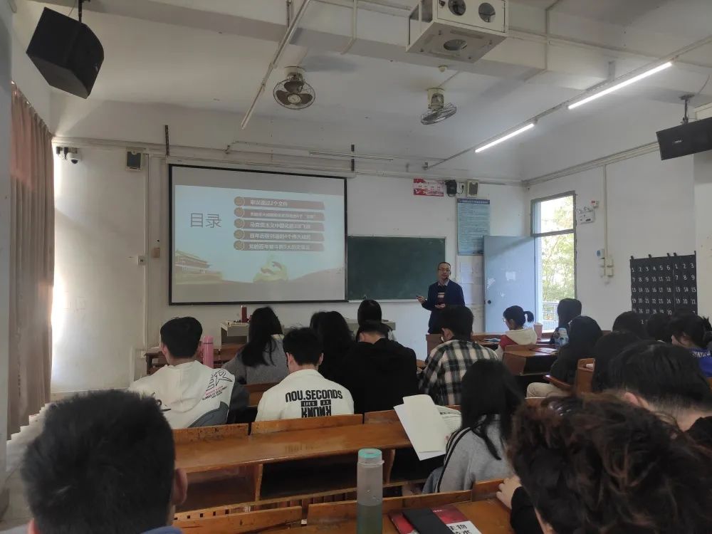 课堂上,陈敏杰老师以党的百年奋斗历程作为切入,重点对“审议通过2个文件”、“总结重大成就和历史经验的3个‘需要’”、“马克思主义中国化的3次飞跃”、“百年历程创造的4个伟大成就”、“新时代取得的13方面成就”、“十个坚持”、“中国共产党百年奋斗的五方面历史意义”等多方面对全会精神为学生做了深入解读。课中,陈敏杰老师还结合了丰富而生动的例子进行授课,系统全面、深入浅出进行讲解,让同学们更加充分理解党的十九届六中全会的重大意义以及新时代青年的担当。