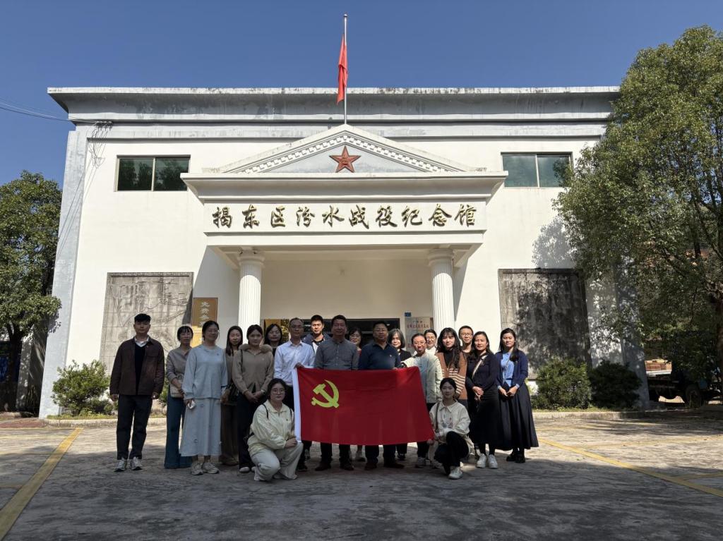 当天上午,师生党员抵达汾水战役烈士陵园。该陵园位于揭东区玉湖镇竹杆山主峰,是集教育、训练、观光于一体的省级爱国主义教育基地,纪念碑由原中央军委副主席刘华清题写碑文。在烈士纪念碑前,全体人员肃立默哀,面向党旗重温入党誓词。随后走进纪念馆,聆听“红路头血战”等战斗故事,馆内珍贵照片与文物再现了1927年南昌起义军在揭阳浴血奋战的壮烈场景。