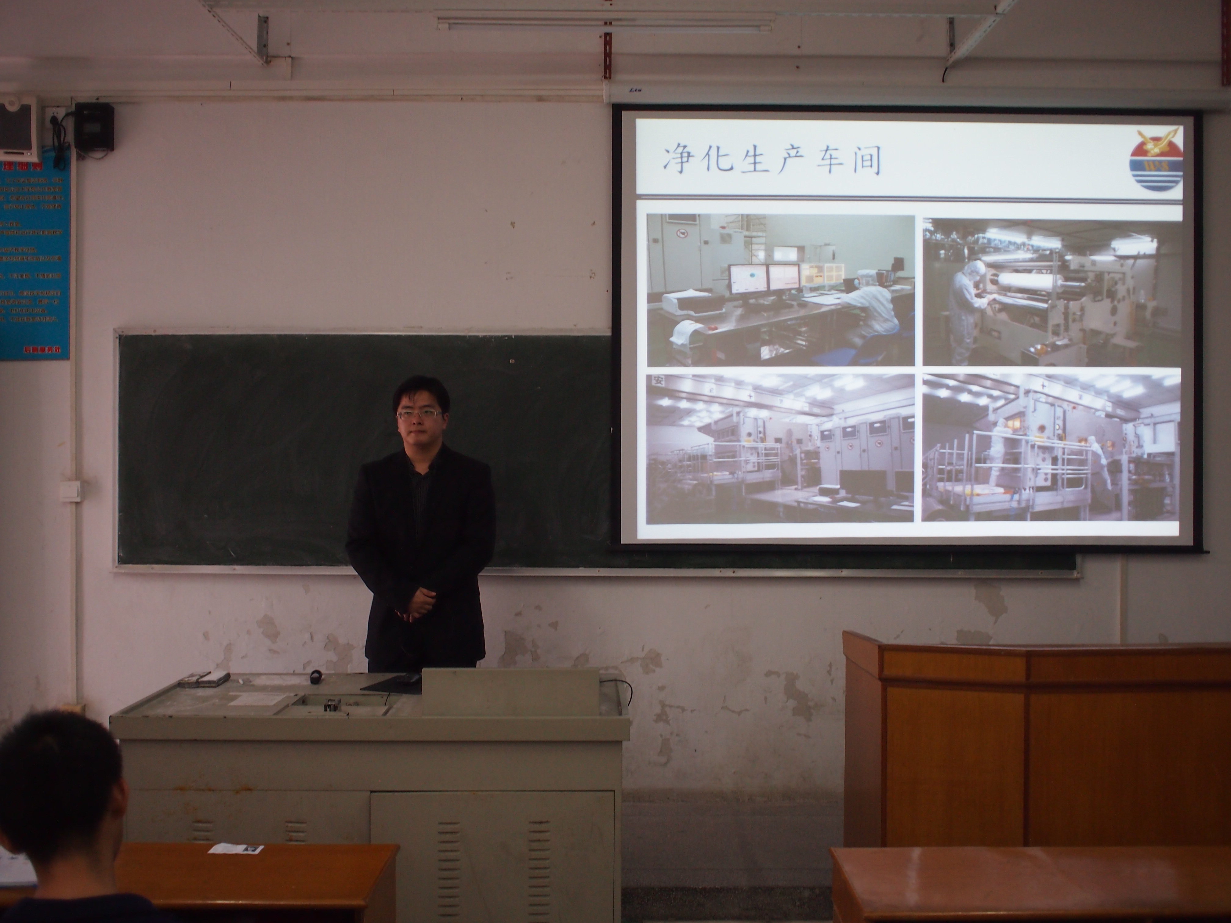 为促进学生就业,我系诚邀汕头万顺包装材料股份有限公司光电薄膜分公司来校进行企业宣讲活动,宣讲会于12月23日中午在教学楼B401举行,主讲人是公司生产总监黄至玮博士,一同前来的还有郑妙玲、陈擎两位人事部工作人员;参加此次宣讲会的有化学工程系王宜民老师、陈敏杰老师、精化131、商检131、石化营销131全体同学以及团总支学生会网络部、新闻小组成员。