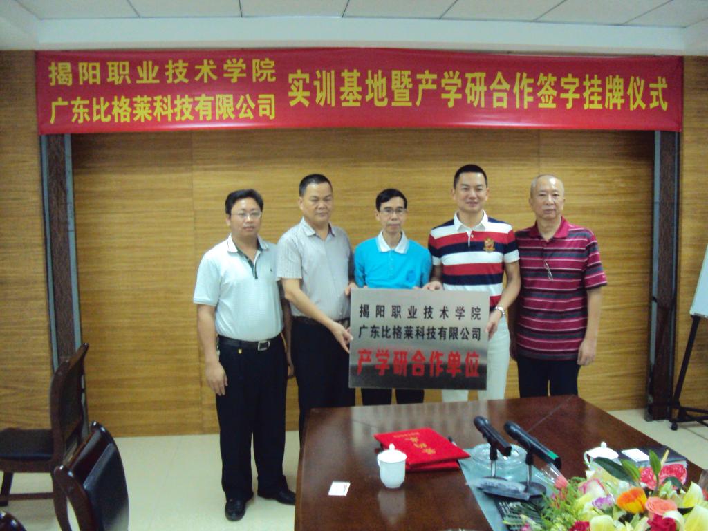 5月17日上午,我院在广东比格莱科技有限公司举行校外实训基地暨产学研合作签字挂牌仪式。龚善初院长、化工系江英志主任、实训中心杨培新主任;比格莱公司陈楷城总经理等参加了本次活动。