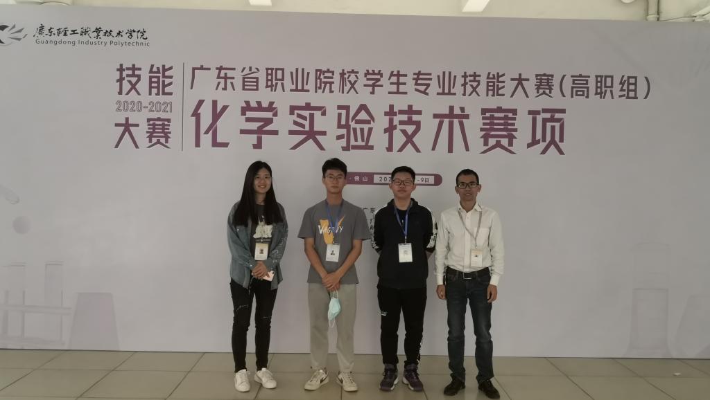 4月8日至4月9日,在广东轻工职业技术学院南海校区举行了为期2天的2020-2021年度广东省职业院校学生专业技能大赛化学实验技术赛项。来自全省26所高职院校共51名学生汇聚于此展示自己优秀的化学实验技术。我校化学工程系派出的两名选手最终取得第29名(赖培金)和第30名(古永豪)的排名,两名同学均荣获“三等奖”。