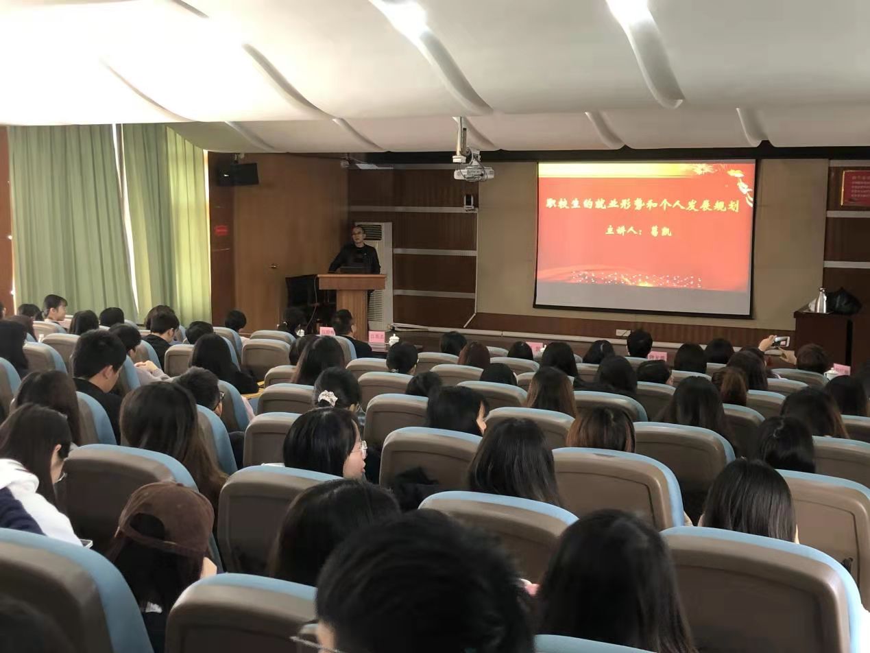 在讲座上,葛凯董事长介绍了大学生与职校生的培养方向、国家就业形势和就业导向等方面的内容,指出了毕业生的思想误区,指导同学们根据职校生的发展路径提前做好个人发展规划。在互动环节中,葛凯董事长还以生动详实的例子解答了同学们对于企业生产实际情况的一些疑惑。随后,珠海国能新材料股份有限公司行政人事部刘红梅经理向与会同学介绍了该公司的大体情况以及目前的人才需求,并现场收取了简历。