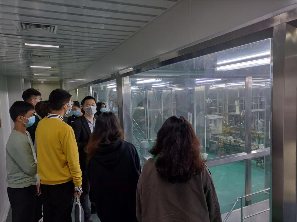 在佳隆食品股份有限公司,生产部陈经理及办公室王主任向同学们介绍了企业的发展概况、生产理念及生产研发等情况。随后,同学们参观了鸡精生产车间、鸡粉生产线和质量检测中心,了解生产岗位职责和岗位技能要求;通过品控部陈经理对公司现代化质量管理体系的介绍与讲解,同学们进一步了解和掌握了产品的品控要求。