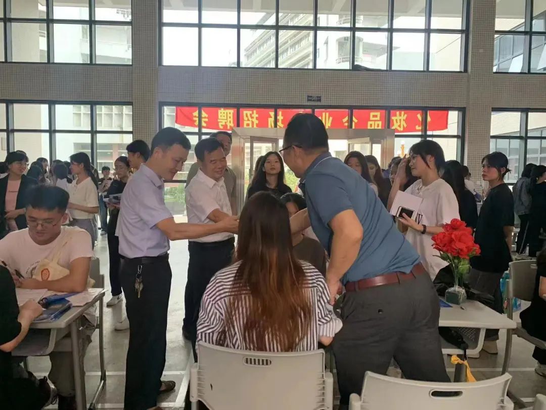 罗恢远到现场与用人单位代表交流,感谢用人单位对学校就业工作的大力支持,了解了人才招聘需求和对学校人才培养的反馈和建议,详细了解学生求职意向和签约状况,并鼓励同学们要好好珍惜机会,积极应聘。据不完全统计,现场有15位学生与企业达成实习就业意向。