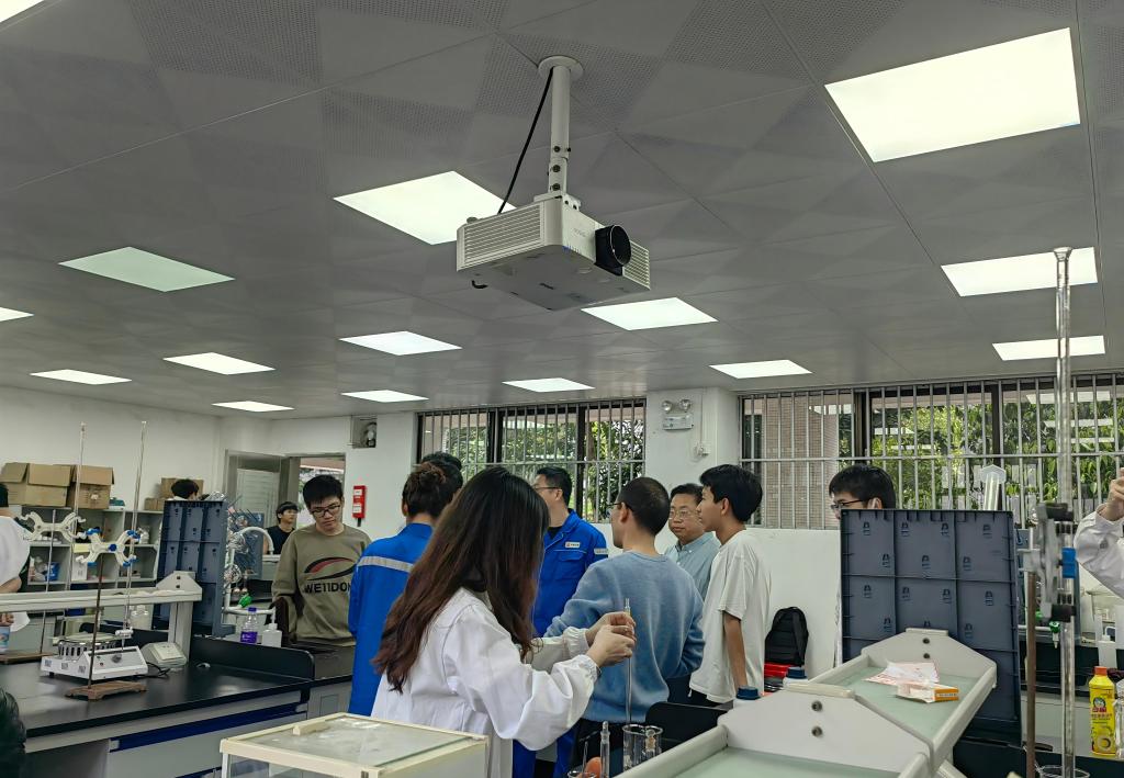 交流结束后,化工系党政领导及骨干教师陪同企业代表参观了校内实验室。参观过程中,企业代表详细了解了系部在精细化工、分析检测等领域的实验设备配置及科研开展情况,并对学生严谨的实验操作和良好的专业素养给予了高度评价。双方一致认为,实验室作为教学与科研的前沿阵地,未来在资源共享、技术研发等方面拥有广阔的合作空间。