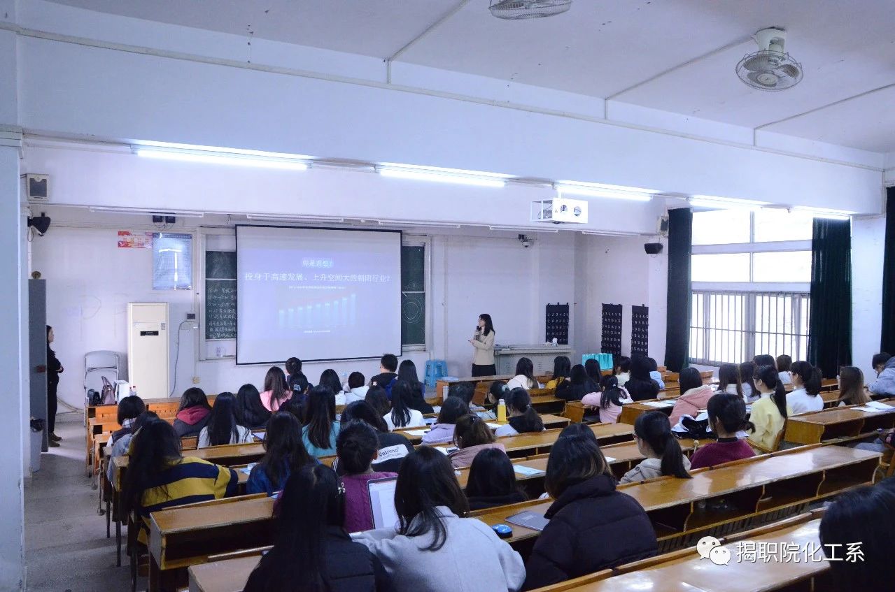 2020年12月17日,诺斯贝尔化妆品股份有限公司在教学楼BT22举办校园招聘宣讲会。化学工程系王宜民老师、大三辅导员陈敏杰老师及大三毕业班同学参加了本次宣讲会。