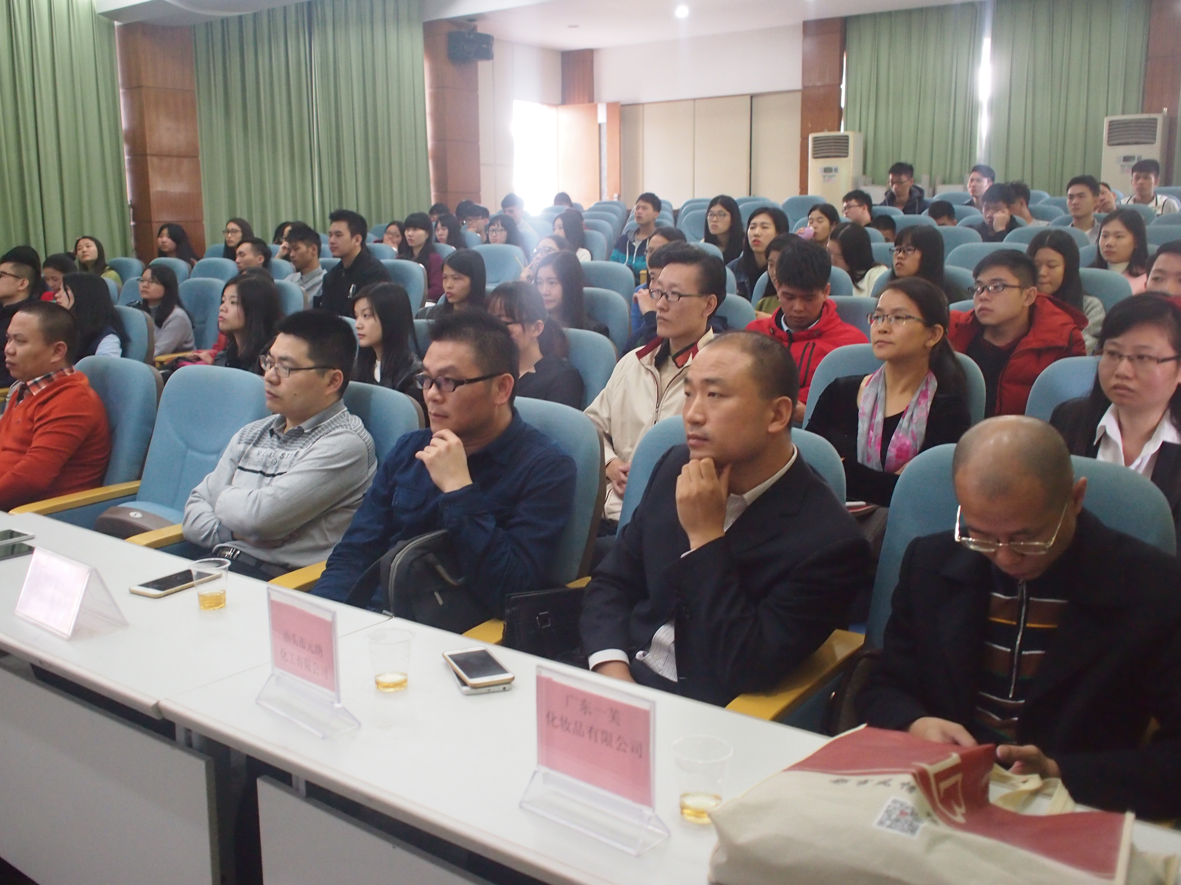 参会企业代表受到我院副院长姚玉平、化工系主任江英志的热情接待,化工系部分教师及2017届所有毕业生参加专场宣讲会。宣讲会由精细化工教研室主任林壮森老师主持,我系毕业生认真听取参会企业代表的宣讲,企业代表们分别从企业的发展、企业文化、岗位需求、福利待遇等方面做了详细介绍。会后,化妆品企业专场招聘会在我院教学楼C栋一楼举行,我系毕业生踊跃参与,与企业相关负责人交流及投递简历。